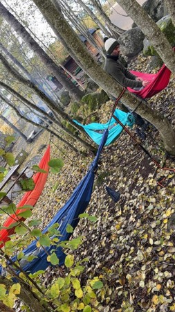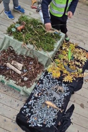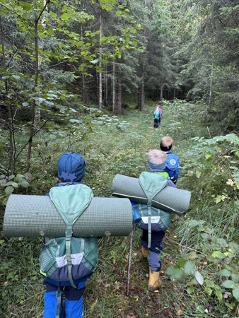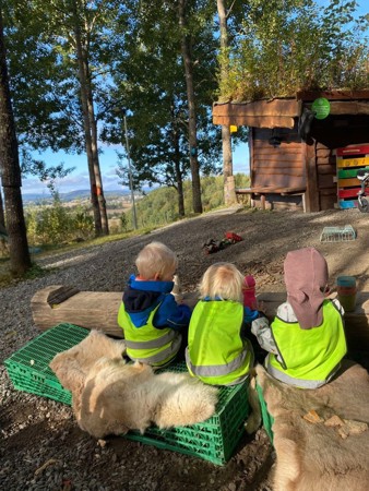 Friluft`n er vår heilårs friluftsavdeling. Her leveres og hentes ungene i skogen på naturleikeplassen med åpningstid 07-16. Basen er to grillhytter med varme i, og ungene har en garderobe. Ungene her er myyye ute og på turer oppå Rennankammen, i Høysloskogen, ved grevlinghiet, over-ei-trøndersk-blautmyr, i Ronjaskogen eller på små turer rundt naturleikeplassen.